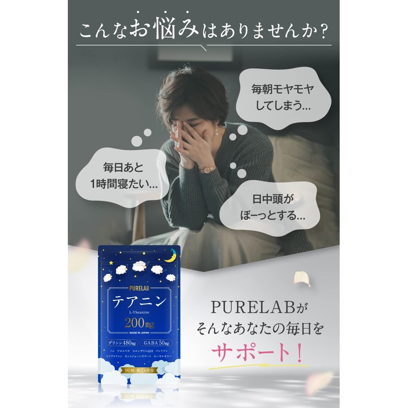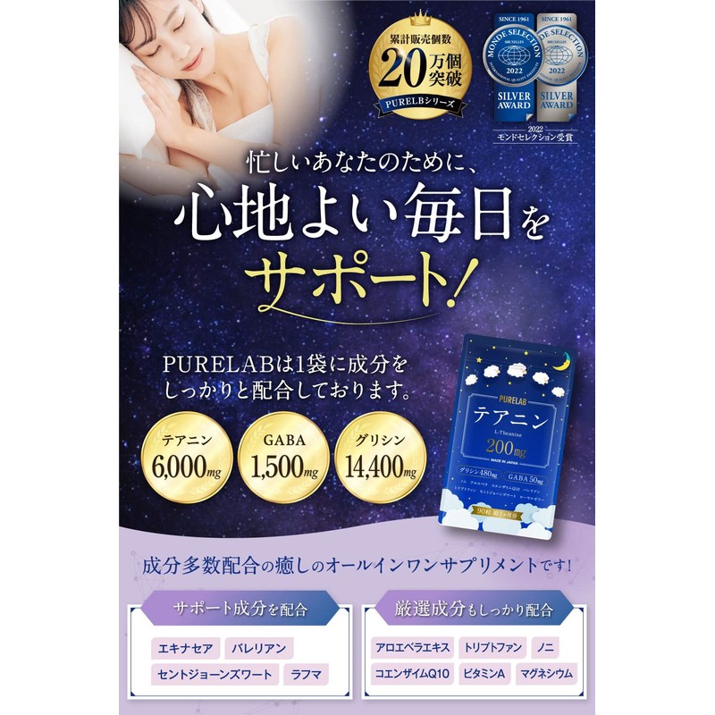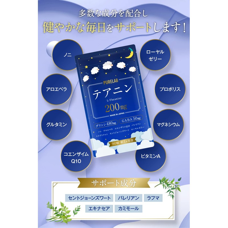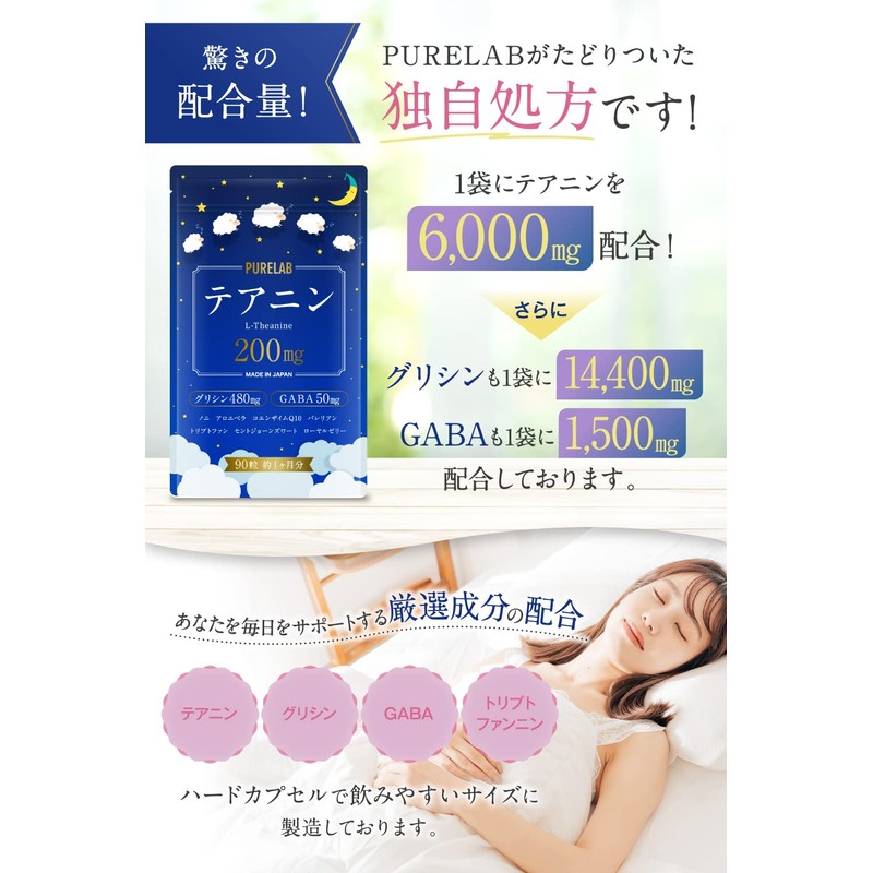 テアニン1日200㎎ グリシン1日480㎎ GABA1日51㎎ アロエベラ 30日分 エキナセア バレリアン サプリメント 国内製造 PURELAB