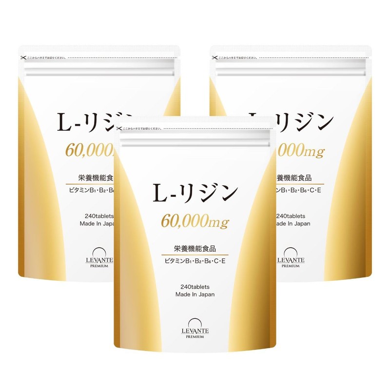 レバンテ リジン サプリ 1日2000mg 栄養機能食品 大容量 240粒 ビタミン7種 亜鉛 L-リジン 国産 国内GMP認定工場 3袋セット