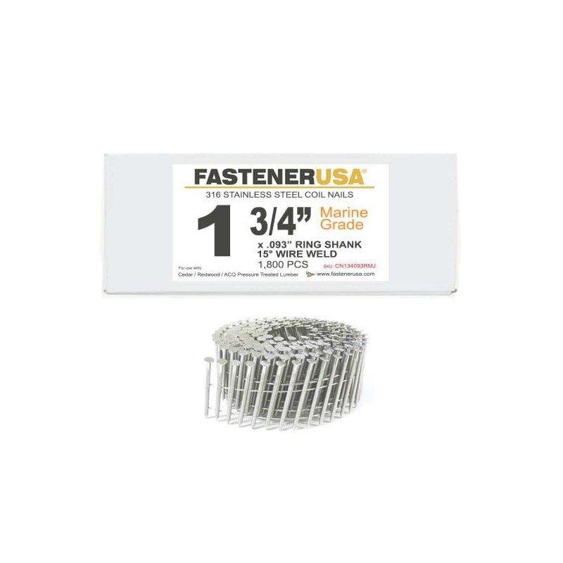 1-3/4" x .093 RING 316 STAINLESS COIL NAILS 15 DEGREE WIRE 1.8M JobPak