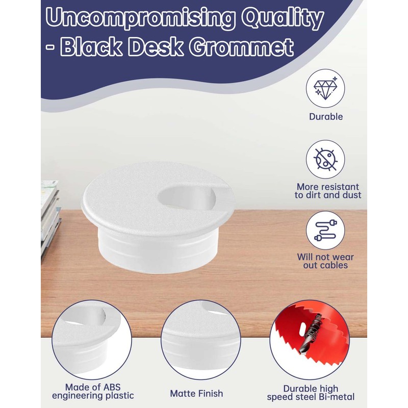 - Material: Hole Saw - Features M42 cobalt bi-metal cutting edge for shock-resistant teeth that resist stripping | Desk Grommet - Made of durable and corrosion-resistant ABS for excellent performance.