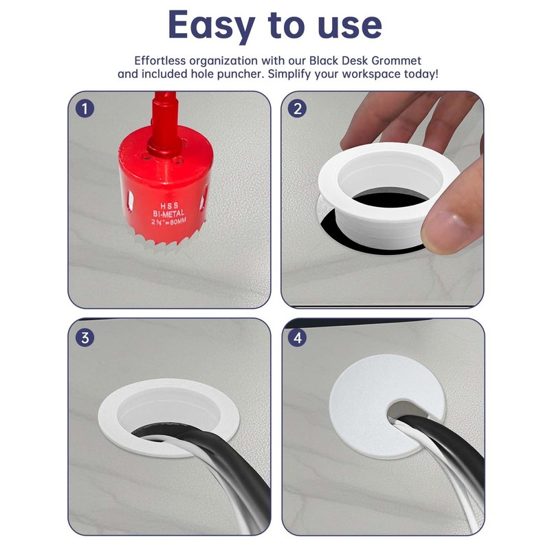 - Easy Installation: After drilling,place the main body of the grommet directly into the hole,it can hide all the cables and wires.