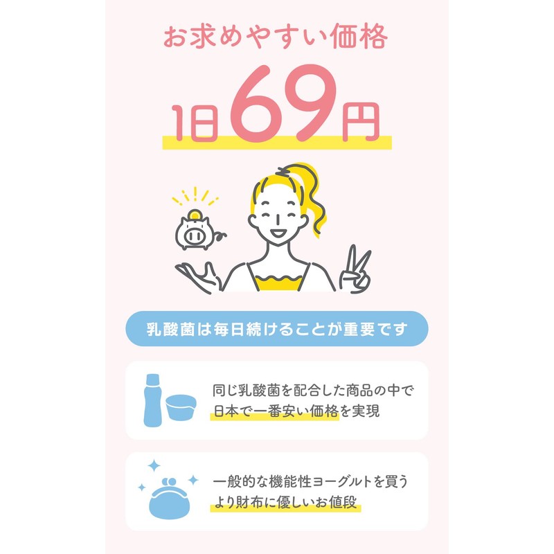 • 【生きた乳酸菌】世界の医師・研究者に最も研究された『ユーティリティ(万能型)乳酸菌』Lactobacillus rhamnosus(ラクトバチルスラムノサス)を1日当たり100億個配合。
