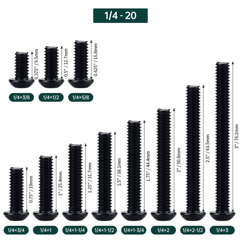 1/4-20 x 1-3/4" Stainless Button Socket Cap Head Screws 25 Pcs, 18-8 (304) Stainless Steel, Allen Hex Drive Button Head, Full Thread, Black Oxide Coated, Fayeploo (with Hex Wrench)
