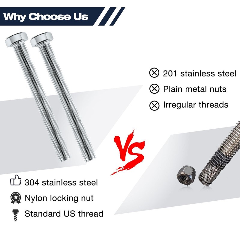 • Product Specification Screw Style: Hex head; Screw Size: 1/4-20 ; Screw Length: 2-1/4"; High quality stainless steel 18-8 (304); Package Included: 20 PCS