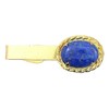 1 4/5 INCH OVAL 18x13 LAPIS CABOCHON CAB GEM GEMSTONE GOLD COLOR TIE CLIP BAR