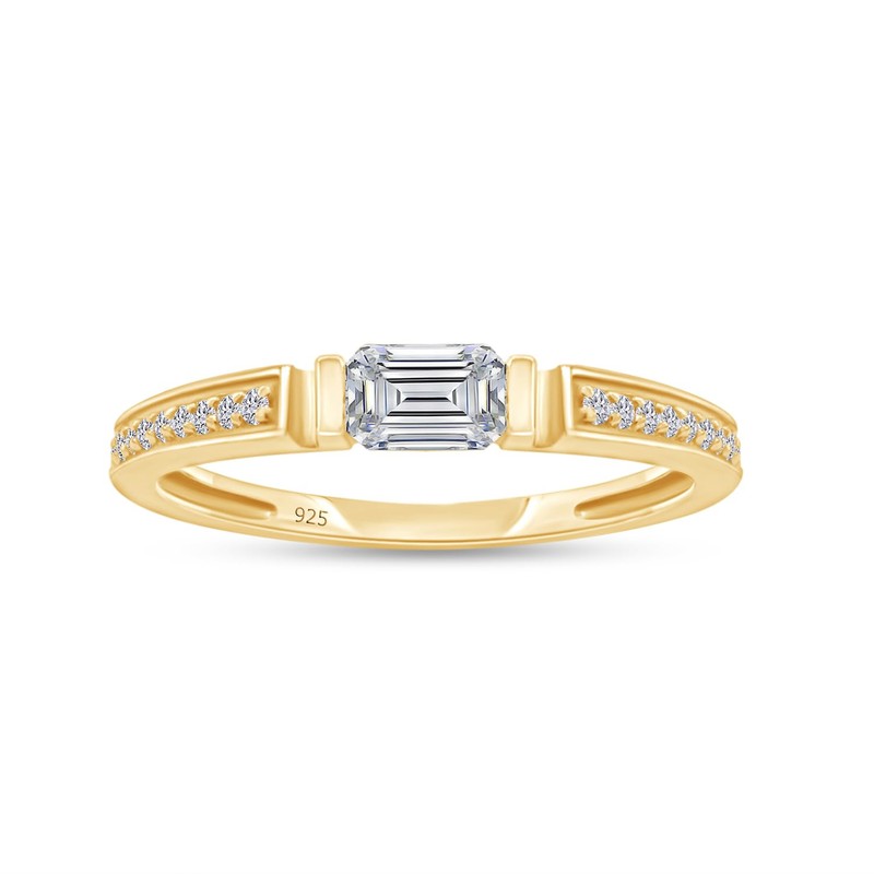 1/4 Carat Emerald & Round Lab Created Moissanite Solitaire Stackable Engagement Ring In 14K Yellow Gold Over 925 Sterling Silver (VVS1 Clarity, 0.35 Cttw) Size - 10