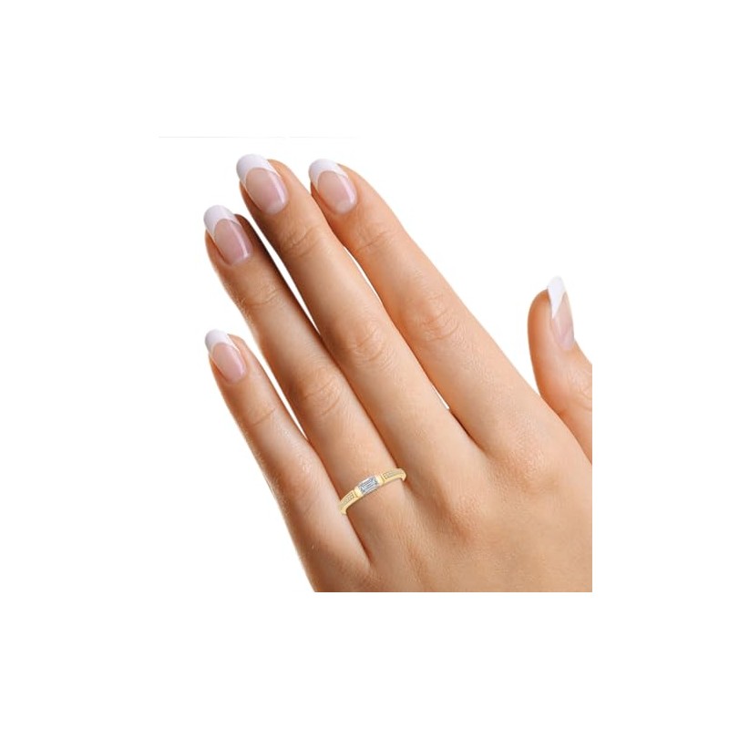 - This Solitaire Stackable Engagement Ring is made with 14K Yellow Gold Over 925 Sterling Silver, allowing the beauty of the Synthetic Moissanite gemstone to truly shine. This Lab Created Moissanite Diamond Engagement Ring are an enchanting, effortless look she'll love