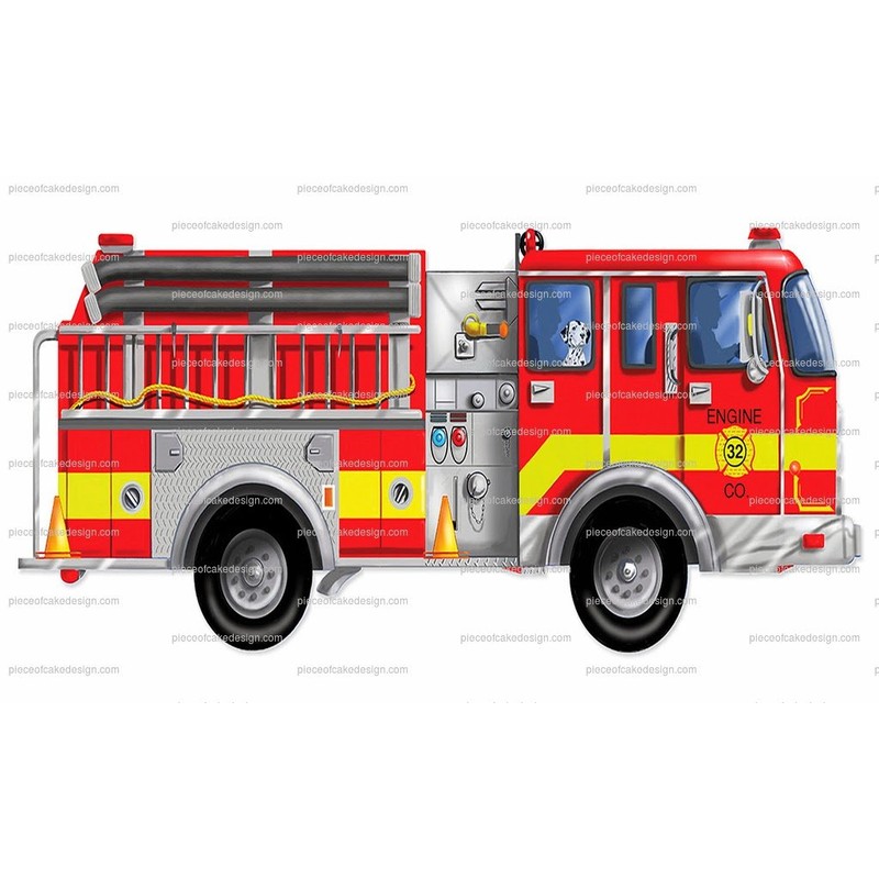 1/4 - Cartoon Firetruck With Dalmation Birthday - Edible Cake/Cupcake Topper
