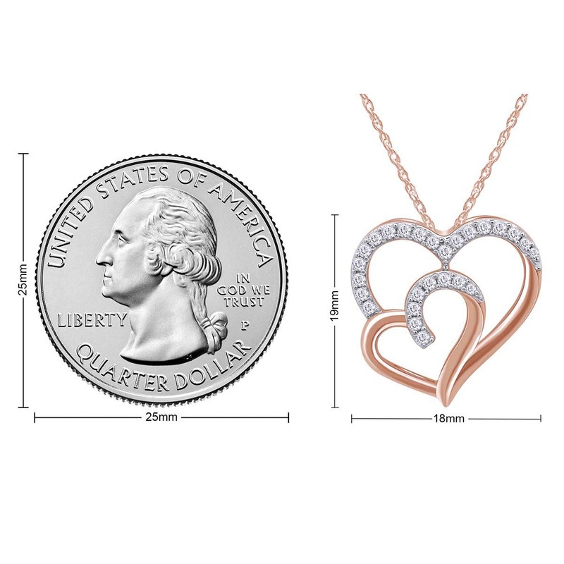 - This Double Heart Pendant Necklace Adds A Touch Of Nature-Inspired Beauty To Your Look In 14k Rose Gold Plated 925 Sterling Silver Makes a Standout Addition to Your Collection With 0.25 Carat (Cttw) Round Shape White Natural Diamond