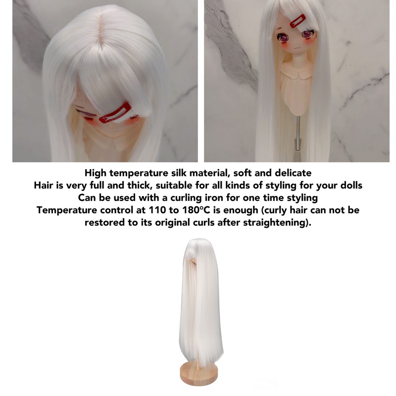 1、SIMULATED SCALP: DIY doll wig with simulated scalp, the head cover is made of three piece mesh, elastic and flattering, suitable for 7 to 8in doll. 2、WITH BANGS: Ball jointed doll wig with bangs, 1cm longer than regular, you can modify the bangs according to the desired length and style. 3、EXQUISITE AND BEAUTIFUL: Doll hair wig inner mesh sewing process is exquisite and beautiful, no extra threads, internal sideburns with sewing hair, to prevent sideburns leakage. 4、HIGH TEMPERATURE SILK: Doll wig is made of high temperature silk material, soft and delicate, durable, very full and thick hair, suitable for all kinds of styling for your doll. 5、STYLING: Doll hair wig can be used with a curling iron to do one time styling, the temperature control at 110 to 180℃ can be (curls can not be restored to their original curls after straightening).