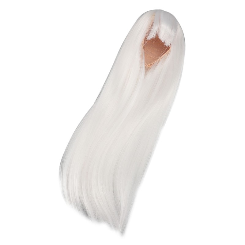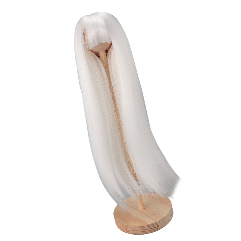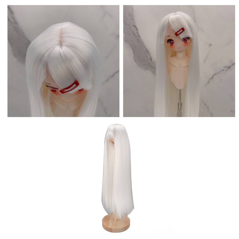 1/4 Doll Wig for 7 To 8in Doll DIY Simulated Scalp High Temperature Silk Ball Jointed Doll Wig Long Straight Hair with Bangs White