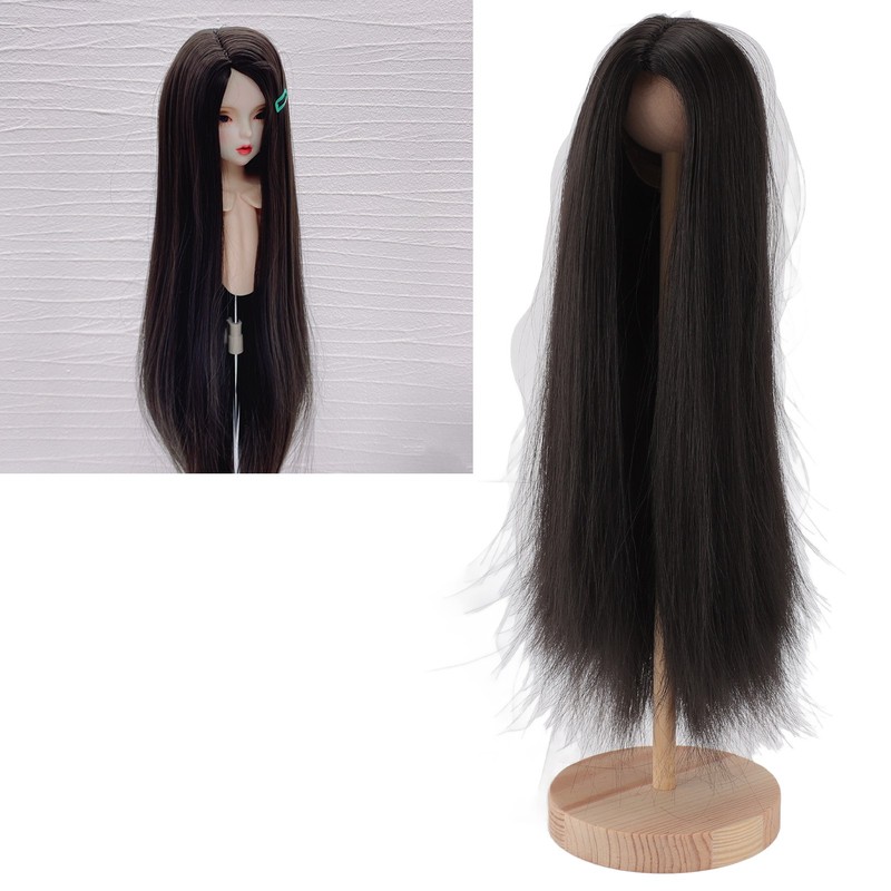 1/4 Doll Wig for 7 To 8in Doll DIY Trimmable Soft High Temperature Silk Ball Jointed Doll Wig Doll Long Straight Wig Black