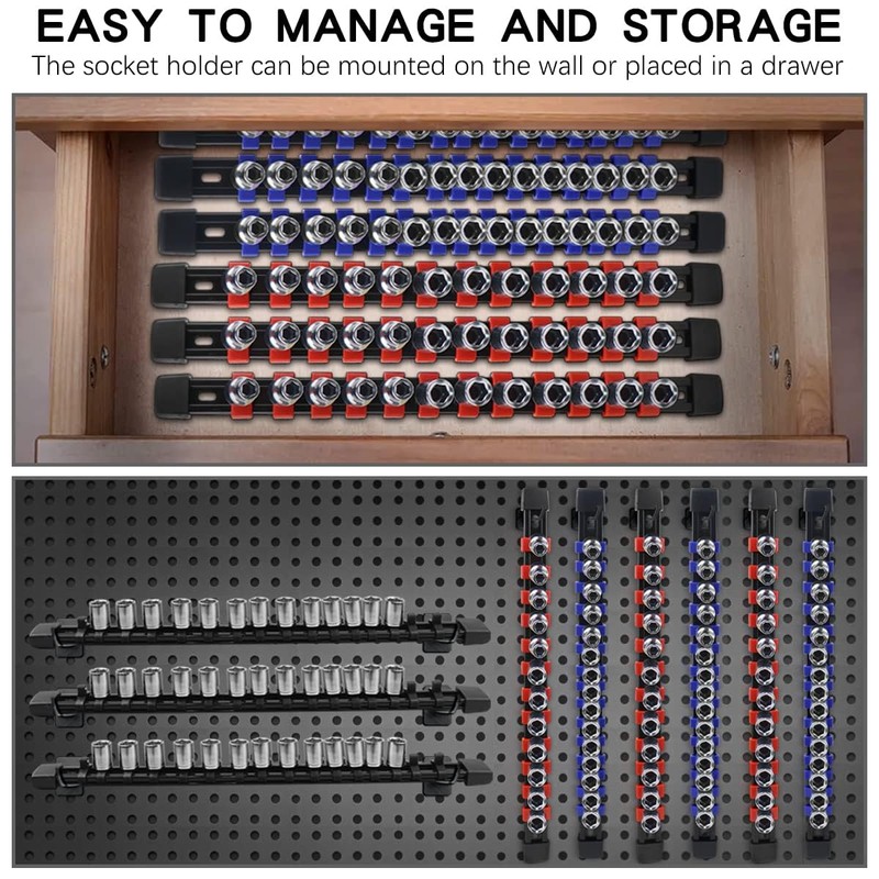 - Easy to Organize: Effortlessly manage your tools with this socket organizer. It can be easily organized in your toolbox,mounted on a wall vertically or horizontally, placed on your workbench or stored in a drawer.