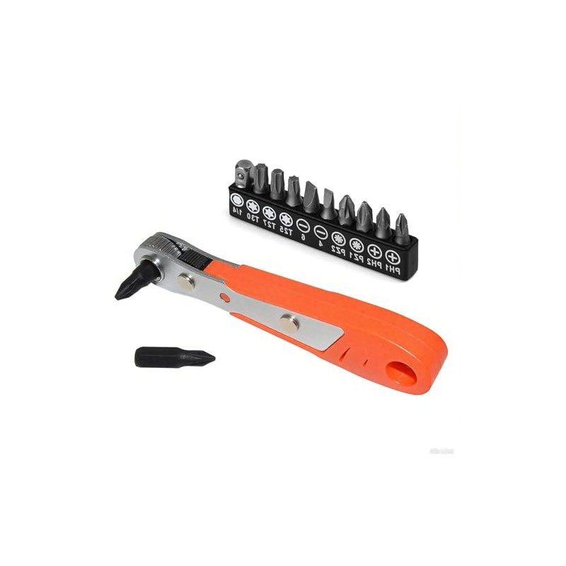 • 【Durable & High-Quality Materials】Made from high-strength alloy steel, this mini ratchet screwdriver features a robust metal angled screwdriver head that securely holds the bit. Chrome-plated to prevent rust, with a comfortable PVC plastic handle for long-lasting use.