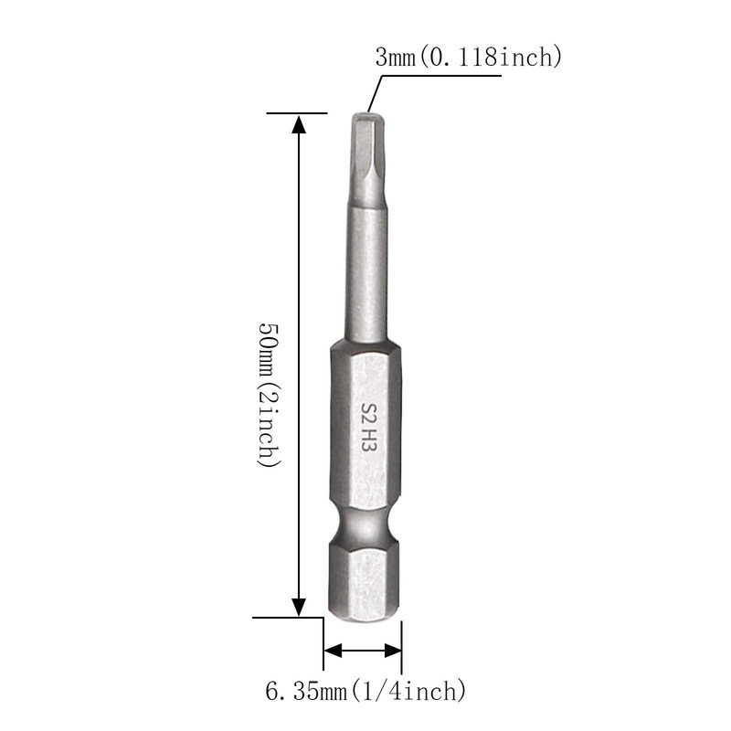 1/4 Inch H3 Hex Shank S2 Steel Magnetic Bits Allen Screwdriver Bit for Electric Manual Screwdriver Drill Impact Drivers 50mm/2 Inch Long (10Pcs)