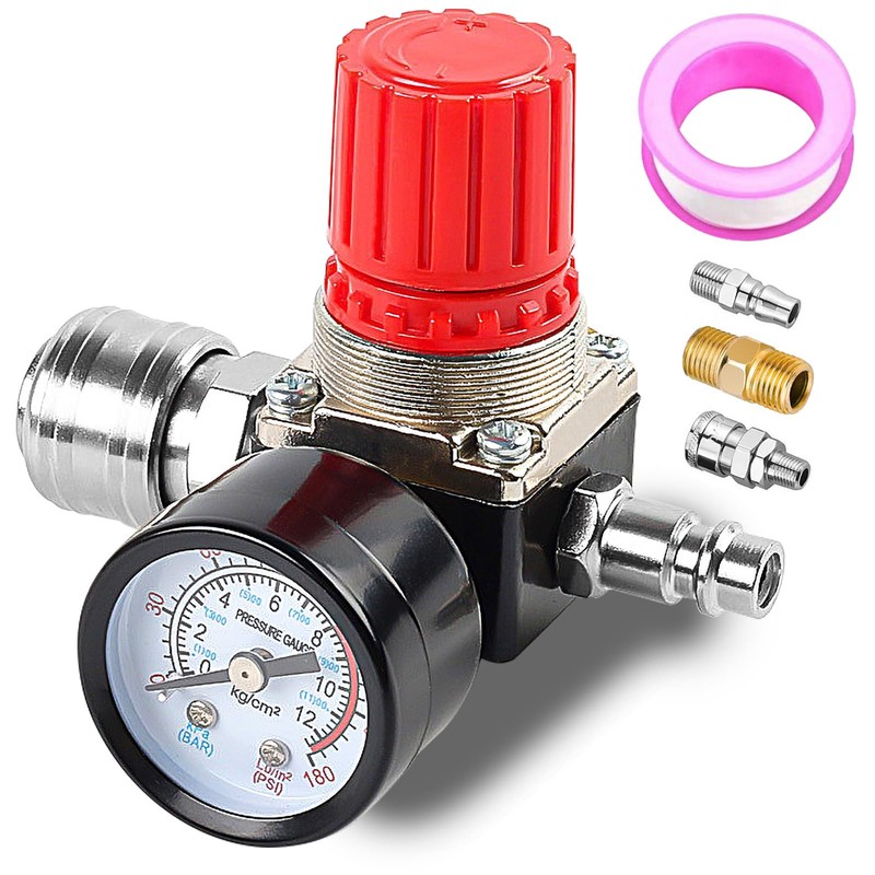 - High-quality material: this 1/4 inch pressure regulator compressed air is made of high-quality, high-quality aluminium and galvanised iron, is robust and durable, has a stable structure, cannot be easily damaged and has a good seal.