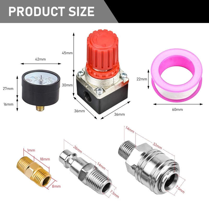 - Main product function: use the value on the pressure switch valve with pressure gauge to adjust the shutdown and start of the air compressor. Among other things, tape is a good helper to help you assemble.