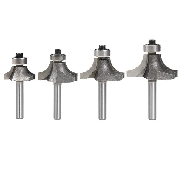 1/4 Inch Shank Round-Over Router Bits Corner Rounding Edge-Forming Roundover Beading Router Bit Set - 1/8" 1/4" 5/16" 1/2" Radius 4 Pcs