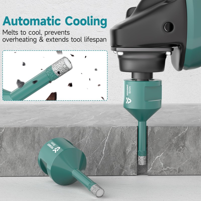 - Dry & Wet Use Hole Saw: Our diamond hole saw can be used for both dry and wet drilling, improving work efficiency and operational flexibility; Dry drilling is faster, while wet drilling helps reduce drill bit temperature and minimize wear caused by high temperatures, thereby extending its service life