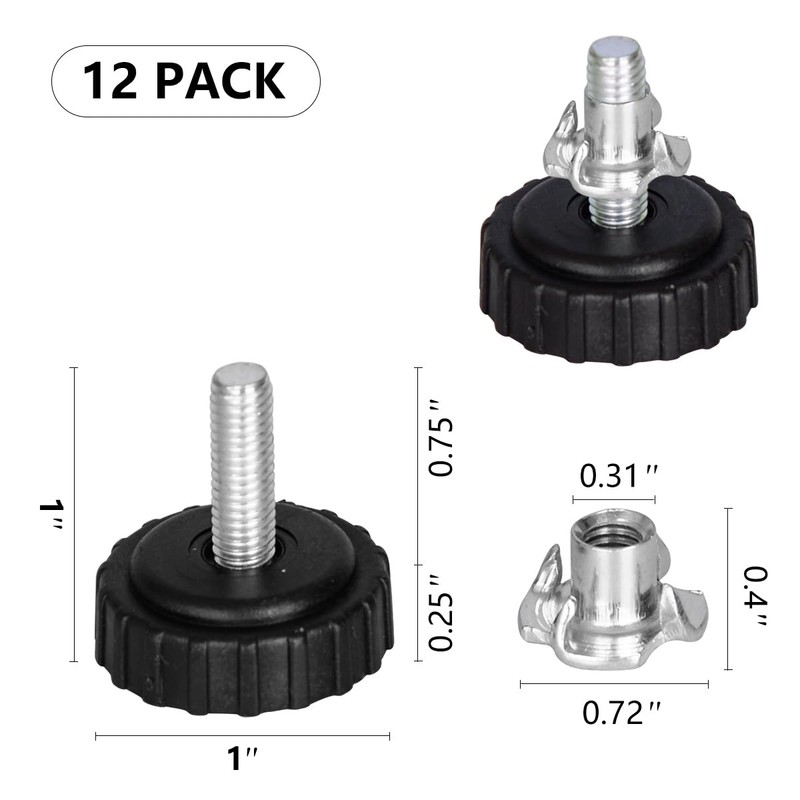 1/4" Thread Furniture Feet Levelers wth Nuts - 12Pcs Adjustable Leveling Feet with T-Nuts - Screw-in Threaded Glide Leveling for Bar Stool/Bench/Bed/Cabinet/Desk/Dresser/Wood Legs