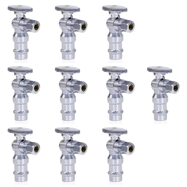 1/4 Turn Press Angle Stop Valve | 1/2" Press x 3/8" OD | Water Shut Off Valve | Toilet Shut Off Valve | On and Off Water Valve (Pack of 10)