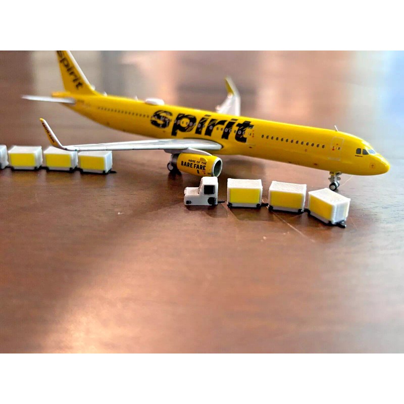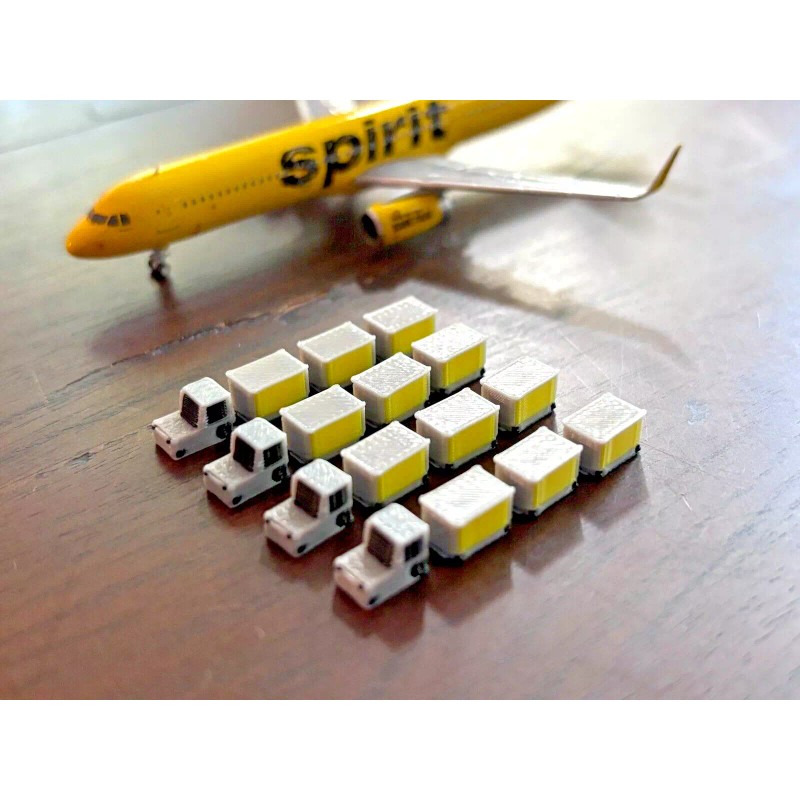 1:400 Model Airport Accessories - 16 Piece Baggage Cart & Tug Set (Grey/Yellow)