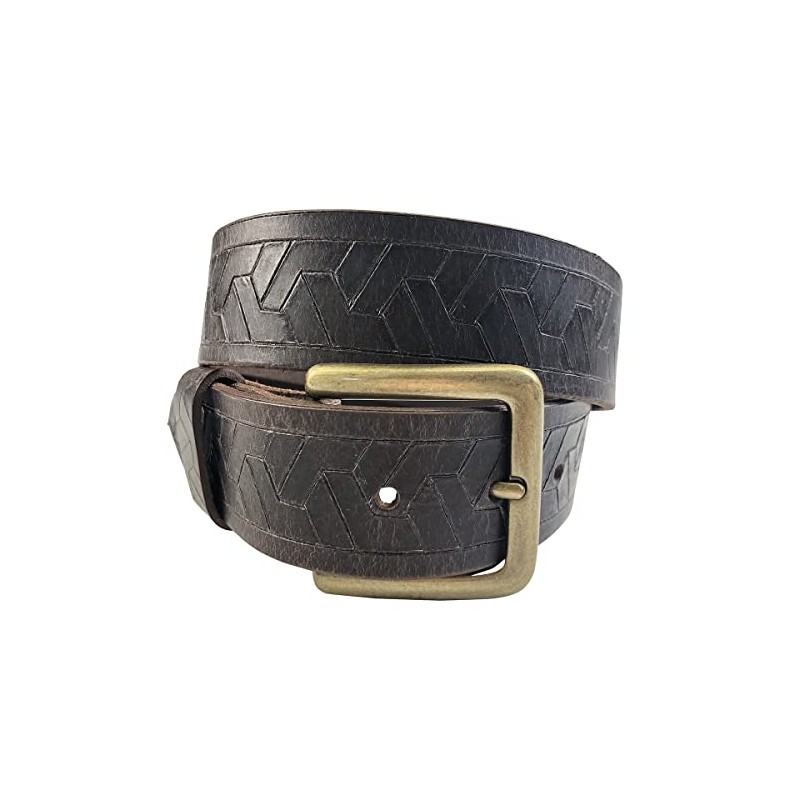 1.5"(38mm) Men's Embossed Geometric Weave Brown Buffalo Leather Belt Handmade (38)