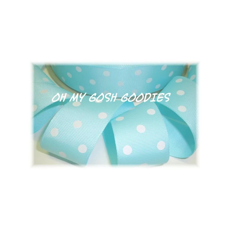 1.5 AQUA BLUE WHITE POLKA DOTS EASTER BOW GROSGRAIN RIBBON 4 HAIRBOW BOW