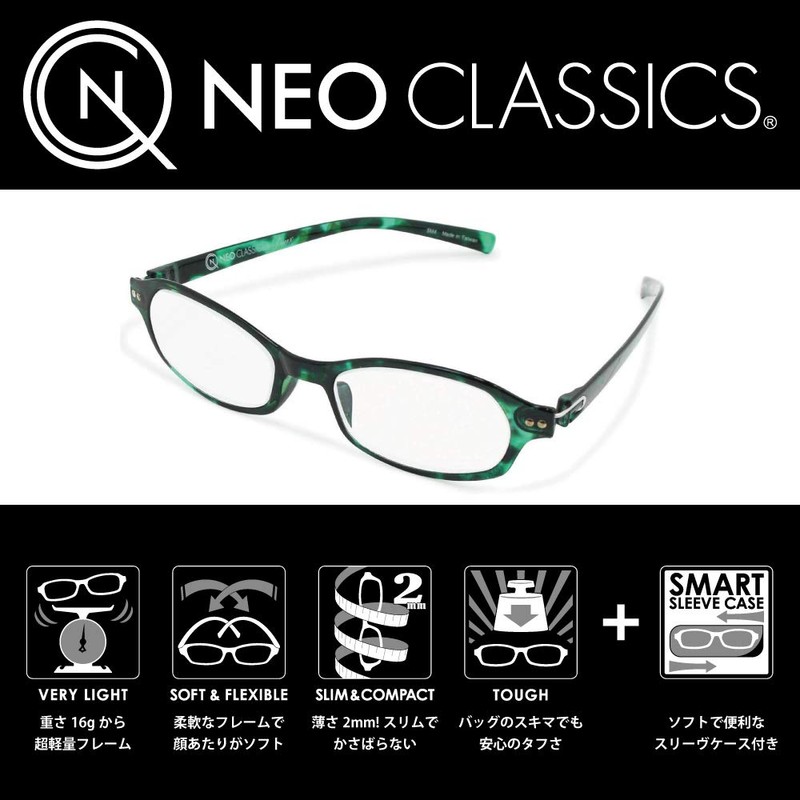 デューク 老眼鏡 レディース +1.5 度数 ネオクラシックデュー 超軽量フレーム ソフトケース付き グリーン GLR-11-4+1.50