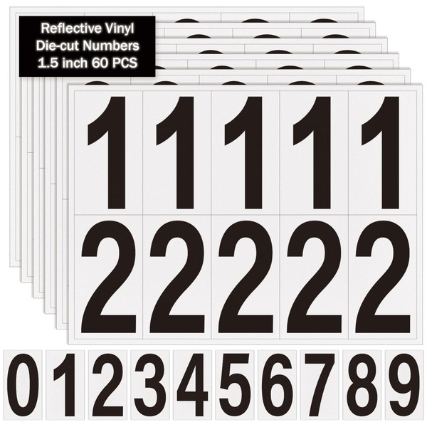 1.5 Inch Adhesive Numbers for Mailbox, Reflective Mailbox Number Stickers for Outside, Waterproof Numbers Stickers, House Address Sign, Trash Can Number, Door Number (60 PCS, Black/White)
