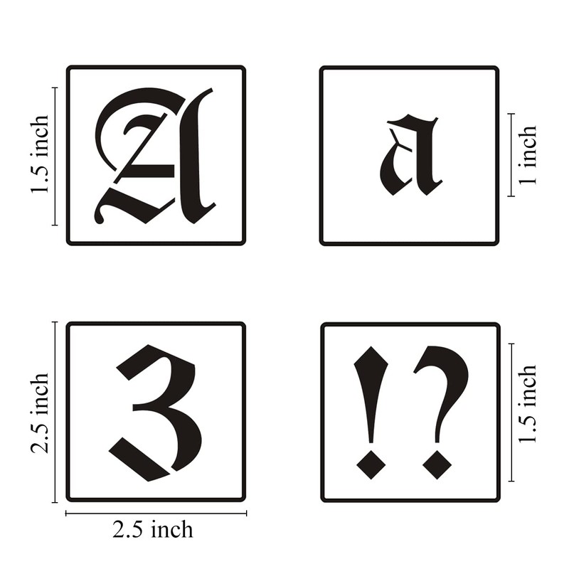 - ☆ EASY TO USE: These stencils can save you a lot of time when creating crafts, you can customize words and numbers to create any art projects you want. You just put them on the surface of the object, paint with a brush or spray with a spray gun, simply do it! They are reusable, easy to clean with soap and water. The reasonable size is easy to store. Size: stencil 2.5"x 2.5", letter height: uppercase letter about 1.5", lowercase letter about 1".