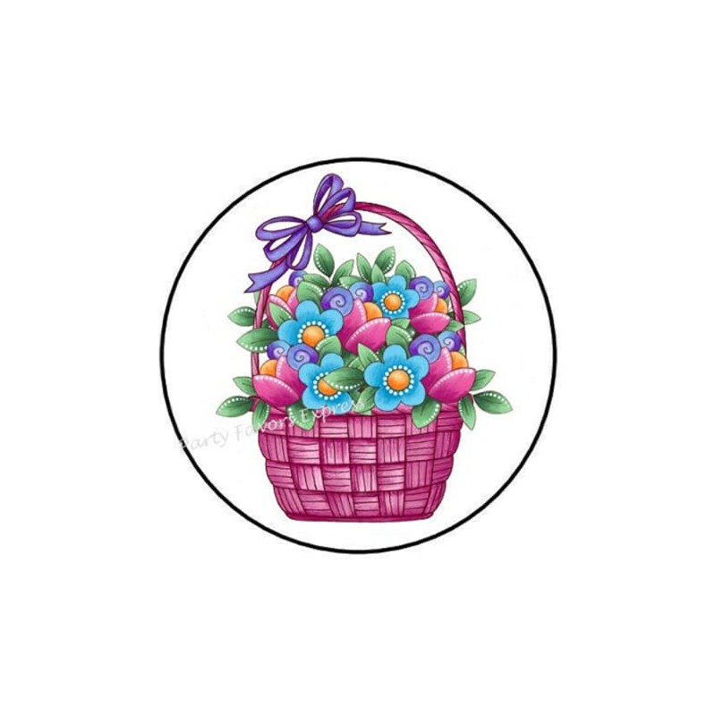 1.5" Inch Flower Basket Easter Stickers - Flower Stickers - Basket Easter Stickers Envelope Seals Labels - #AA61RK (30 Pcs)