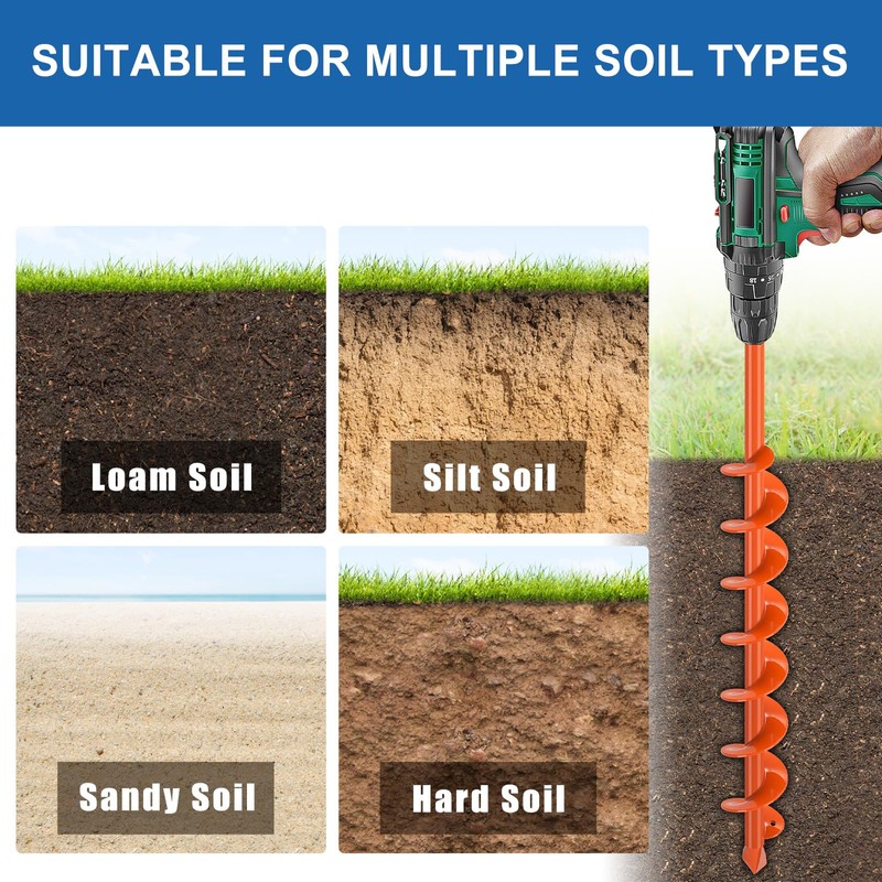 - Upgraded Auger Drill Bit: The 1.6" x 32" post hole digger for garden suitable for many kinds of soil, hard clay, Clay, Sandy soil, rocky soil, our hole digger for drill can be suitable. Smooth spiral edge avoids hand cuts during installation/removal.