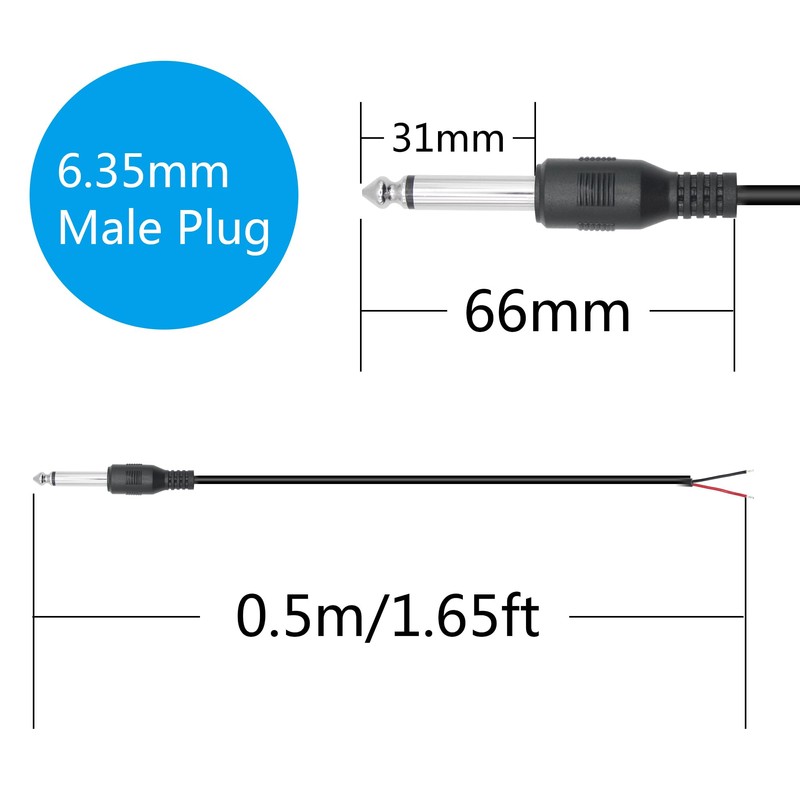 - 【Product features】6.35mm male plug to bare wire open end audio cable,perfect replacement of the original TS 2 pole mono 6.35mm male plug connector audio cable,for worn out or broken microphone speaker replacement DIY repair.