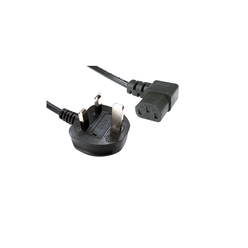 1.8 Metre Moulded Black c13 Right angled Kettle Lead 90 Degree Socket to UK Mains IEC320C13R to BS1363 5 amp Fuse GTSA-3 N14586 Suitable for PC Base Units, TVs Monitors