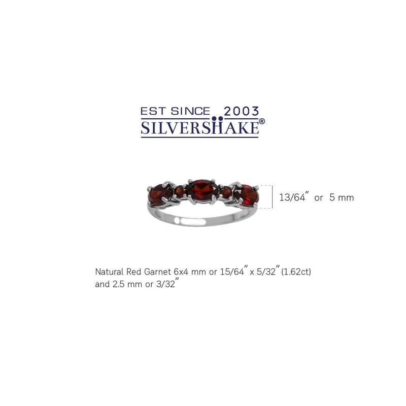 - Silvershake 1.8ct. 3 Stone Natural Garnet White Gold Plated 925 Sterling Silver Ring; is shipped to you in anti-tarnish protection inside reinforced gift boxes with satin-style pouches; guaranteed beyond competitors