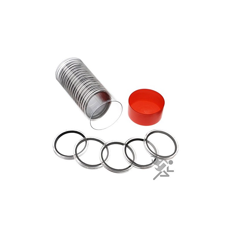 (1) Airtite Coin Holder Storage Container & (20) Black Ring 42mm Air-tite Coin Holder Capsules