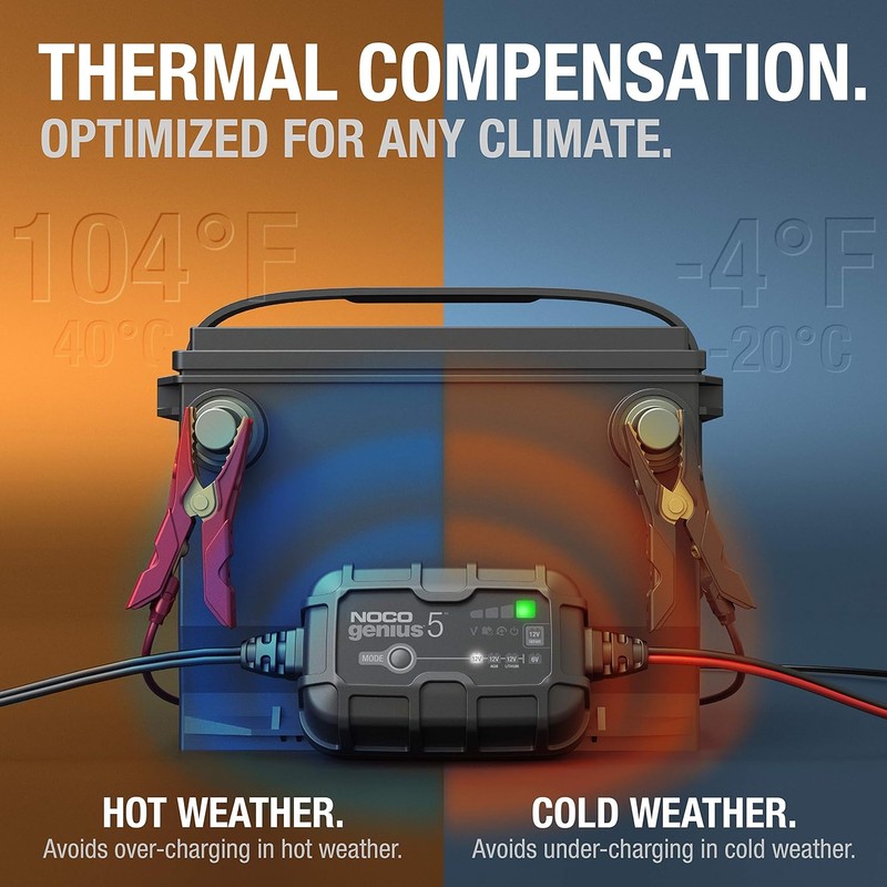 Precision Thermal Charging – Built-in thermal sensor adjusts charging based on ambient temperature, preventing overcharge in hot conditions and undercharge in cold.