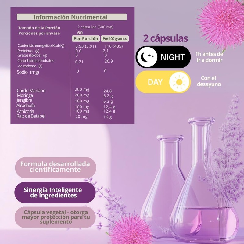 Ingredientes Clave: Cardo Mariano, Moringa, Jengibre, Alcachofa, Achicoria