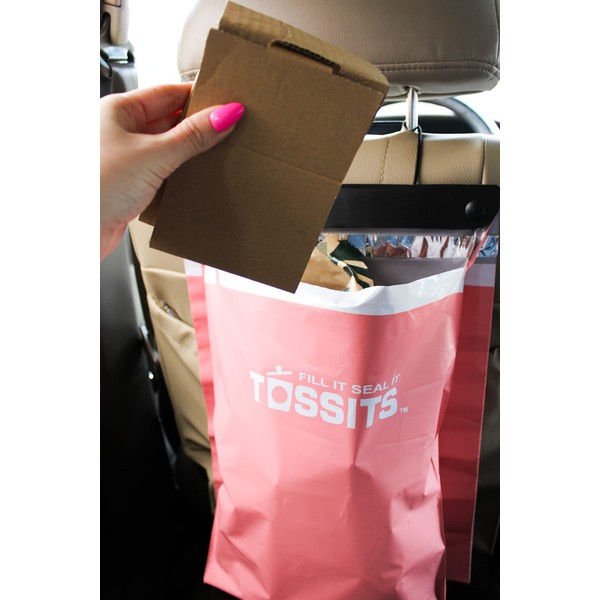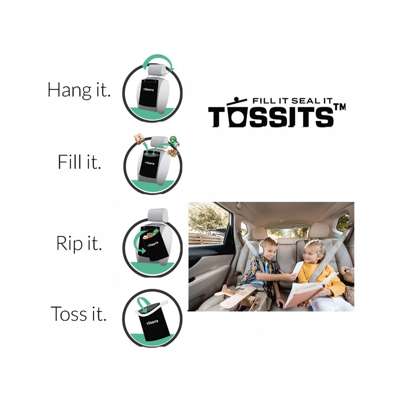 THE BEST CAR GARBAGE BAG SYSTEM EVER CREATED!Featured in Reader's Digest, Good Housekeeping, Women's Day, Car and Driver, and BuzzFeed - all in the last year! TOSSITS car garbage bags were created for busy parents with messy kids, daily commuters, and anyone who likes a clean car interior. Imagine having a trash bag always within an arm's reach - you'll never have a dirty car again! Used napkins, old fast food bags, random trash, empty coffee cups and water bottles on your floor, in your door and cup holders - all a thing of the past when you use our amazing car garbage bags. TOSSITS car garbage bags are not your average trash can or waste bin. Our goal was to create a new car trash bag system that solved the issues of other car trash bags. We also wanted our garbage bag to work so well that it actually helped keep trash off of our highways. WHY OUR CAR GARBAGE BAGS ARE THE BEST: PROBLEM: Reusable car waste bins get dirty and smelly, so you constantly have to wash them. WAY TOO MUCH WORK! TOSSITS SOLUTION: Disposable car garbage bags where the mess and smell get thrown out with the garbage bag. SIMPLE AND EFFECTIVE!PROBLEM:Other disposable car garbage bags and standard plastic shopping bags are weak and thin, causing them to rip and spill trash. CREATING MORE WORK FOR YOU!SOLUTION:TOSSITS heavy duty garbage bags won't rip and corners stay strong, no leaks. SAVES YOU TIME AND EFFORT! THE BEST CAR GARBAGE BAG EVER CREATED! WHY YOU'LL LOVE TOSSITS CAR GARBAGE BAGS: ✔ SAVES YOUR TIME, MONEY, AND ENERGY ✔ SIMPLE AND EFFECTIVE ✔ FITS AROUND ANY HEADREST - FRONT OR BACK SEAT ✔ NO MORE MESSY CAR ✔ INSTANT CONTROL OVER YOUR CAR'S MESS ✔ WATER BOTTLES NOT ROLLING AROUND YOUR FLOOR Try it out for yourself today, we know you'll love it!