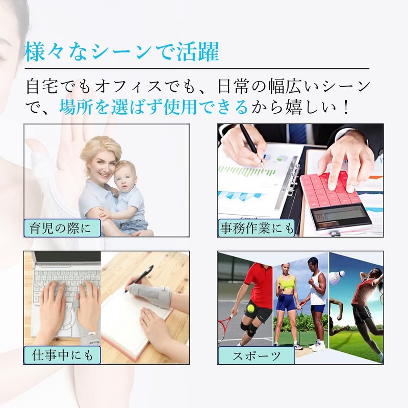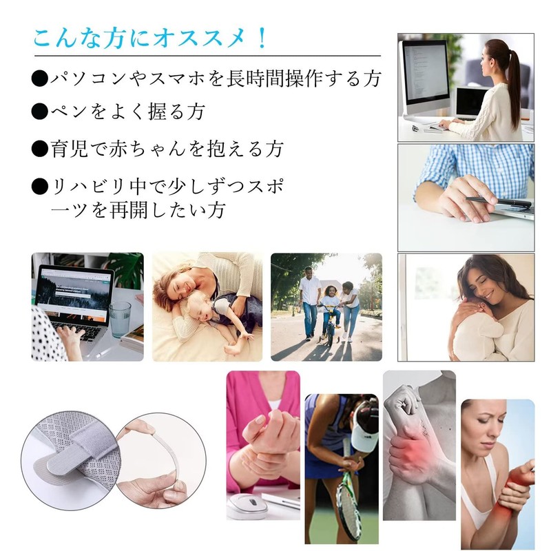• 【親指手首をサポート】 本製品は親指、手首の固定、保護など、手首の過度な動きを制限しサポートします。パソコンやスマホなど長時間操作する方、育児等力仕事で手首を酷使してる方、よくペンを握る方もおすすめです。