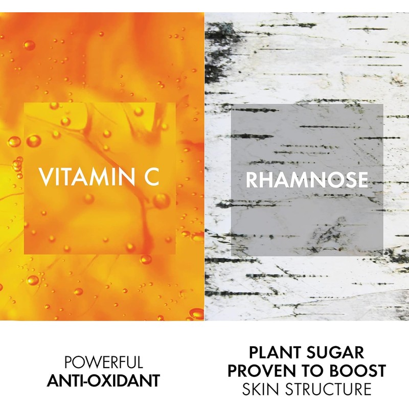 Ingredientes avanzados – Con Vitamina C pura, Ramnosa y Ácido Hialurónico que combaten los signos de envejecimiento y mejoran la elasticidad de la piel.