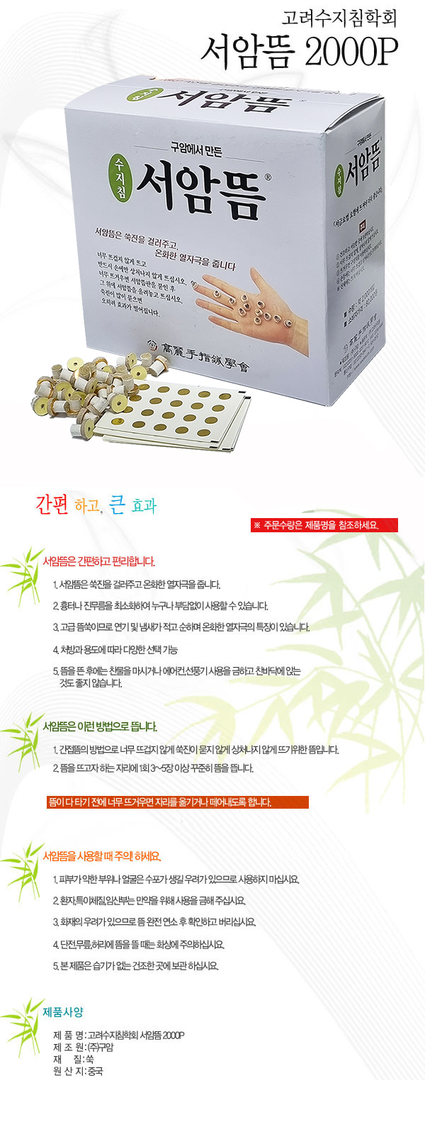 1 box of 2000 Seoam moxibustion from the Korea Tree Acupuncture Society (Seoum therapy/Suji moxibustion/Al moxibustion) / 고려수지침학회 서암뜸 2000개 1박스 (서금요법/수지뜸/알뜸)