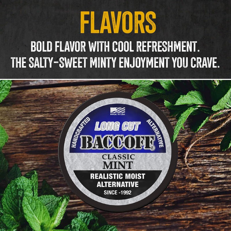 1 Can, BaccOff, Classic Mint Long Cut, Bold and Icy Mint Flavor, Realistic Moist Alternative