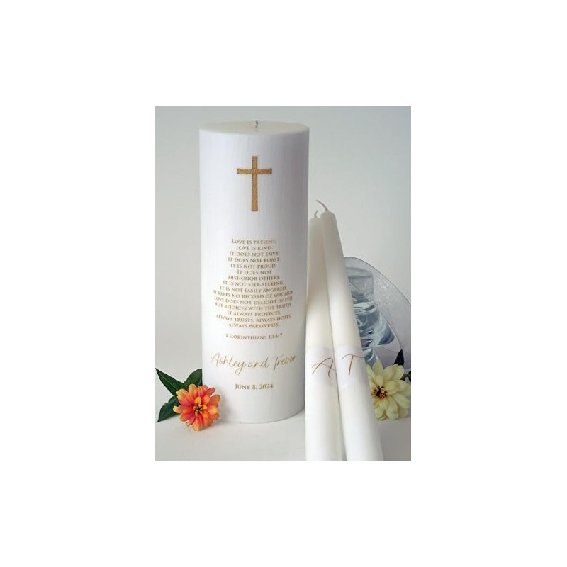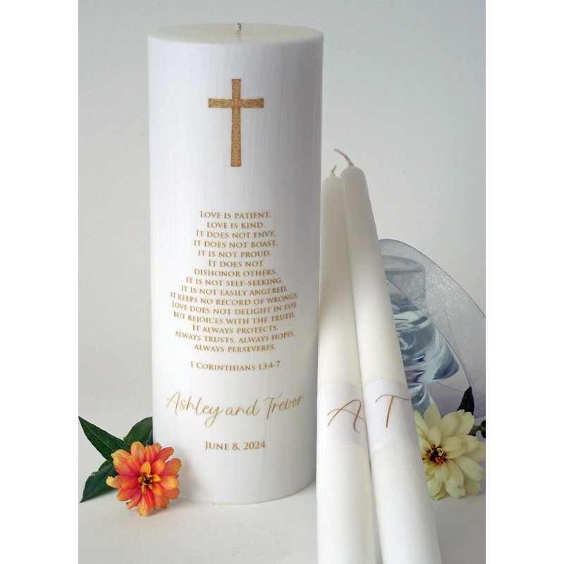 1 Corinthians 13 Wedding Unity Candles - Gold