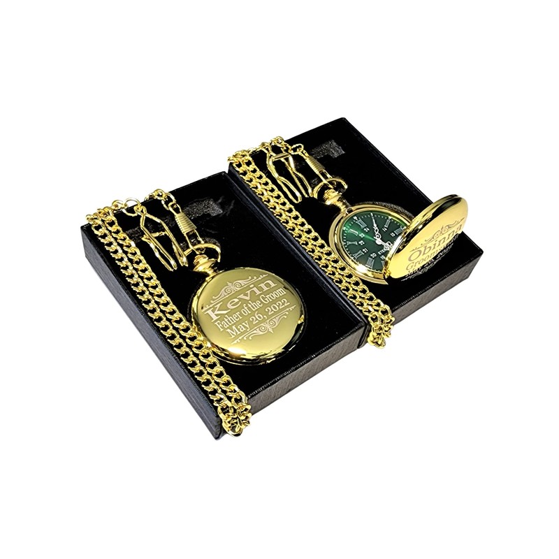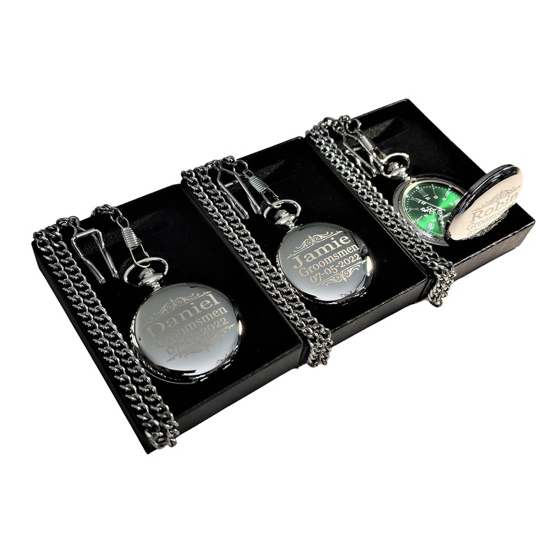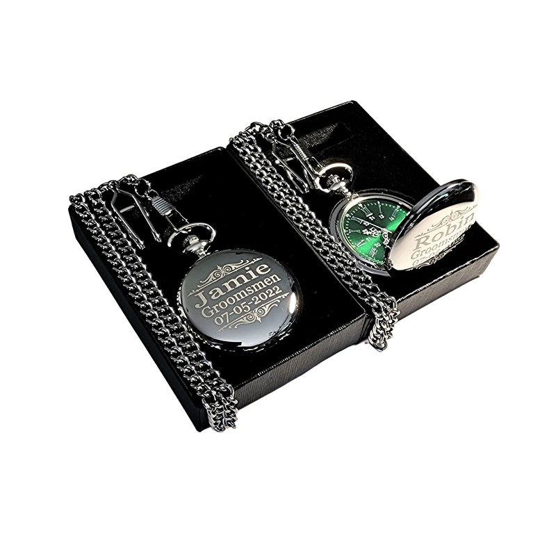 1 Engraved Green dial Pocket Watch, personalized watch, box, chain, battery and engraving included, wedding gifts (Black)