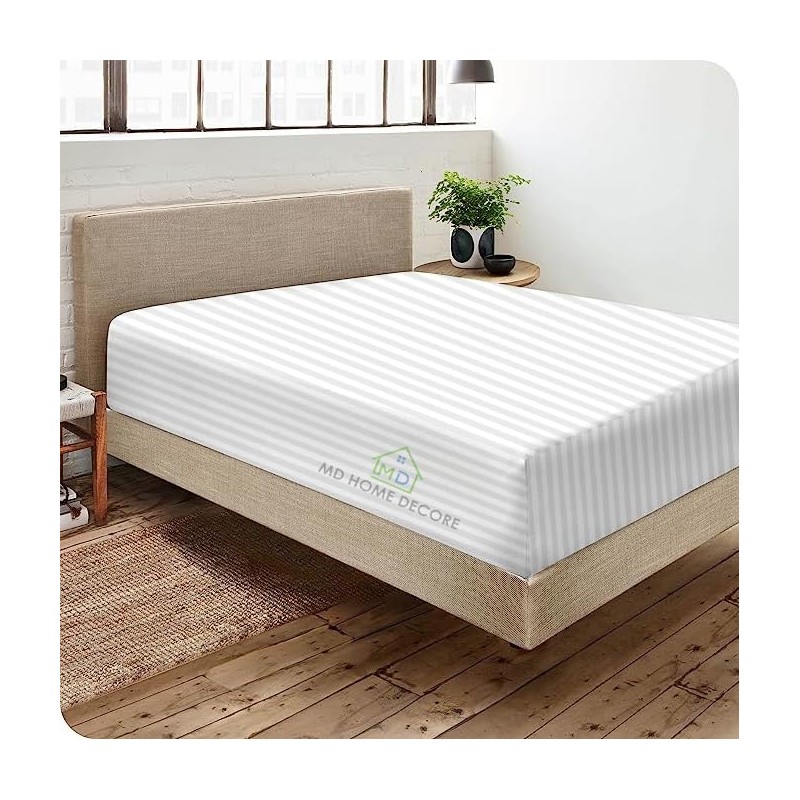 1 Fitted Sheet Only, 100% Egyptian Cotton - 400 Thread Count, Fitted Sheet fits Upto 15 Inch Deep Pocket - Queen Size - Hotel Luxury Single Fitted Sheet Only - White Stripe Fitted Bottom Sheet Only