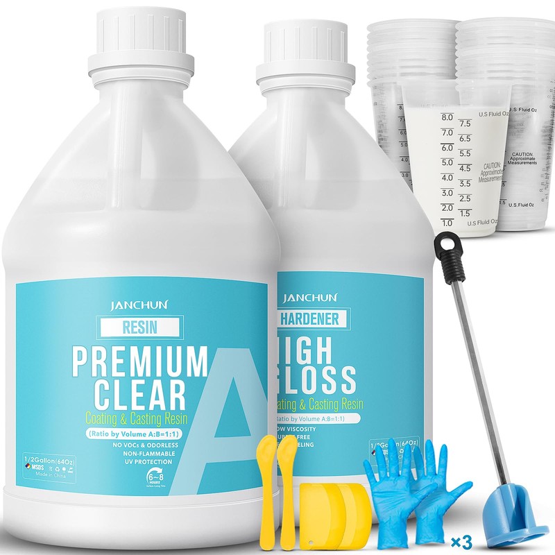 1 Gallon Premium Clear Epoxy Resin,High Gloss Casting and Coating Kit for River Table Tops, Art Resin,Jewelry Making, DIY,Tumblers, Molds, Art Painting with Epoxy Mixer, 20×8oz Measuring Cup and More