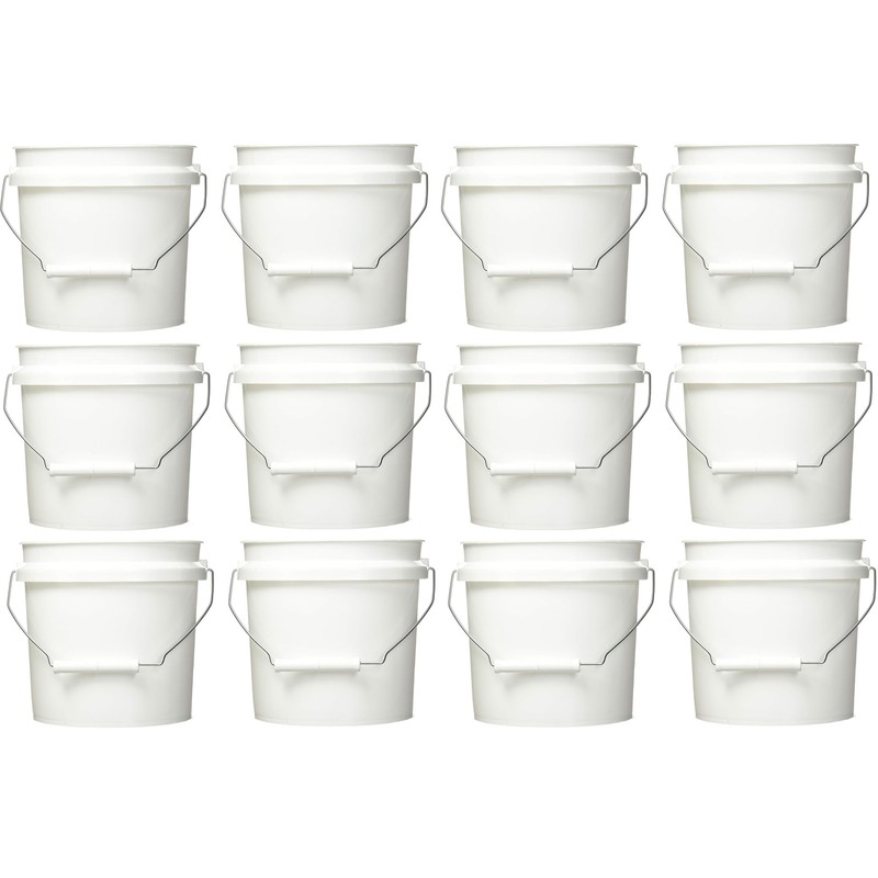 1 Gallon White Plastic Reinforced Rim Paint Pail Bucket w Handle - Pack of (12)