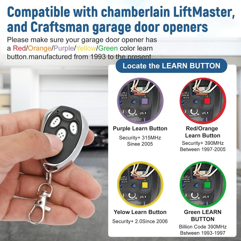 - The 890MAX Universal Garage Door Remote Compatible with chamberlain/liftmaster/craftsman garage door openers from 1993 to present.Garage Door Remote Compatible with red/orange/purple/yellow/green learn button. Garage Door Opener Remote replacement 371LM, 373LM, 891LM, 893LM